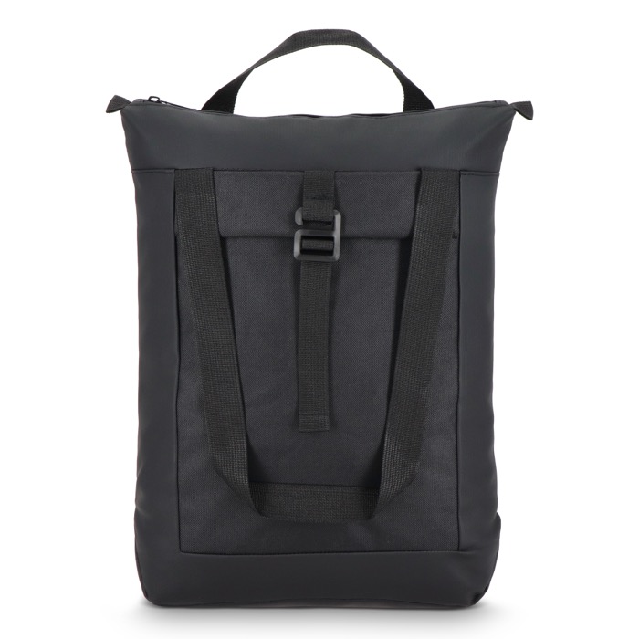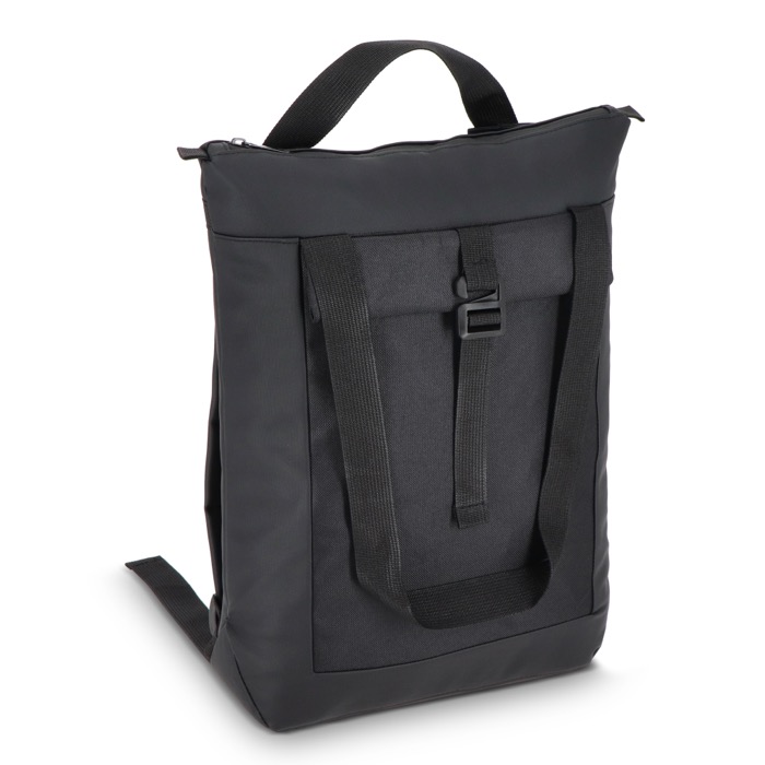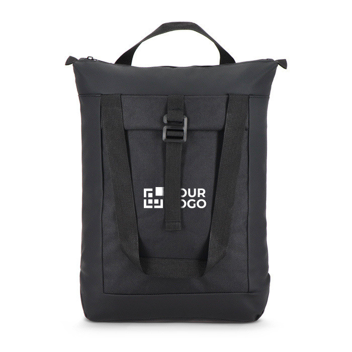 Mochila para portátil en tejido 210D con recubrimiento en piel sintética, pensada para el uso diario en oficina y desplazamientos. Integra compartimento acolchado para portátiles de hasta 15,6'' y un bolsillo frontal con cierre enrollable para acceder rápido a lo esencial. Suma un compartimento adicional con cremallera para organizar cargadores, documentos o accesorios. Las correas ajustables permiten llevarla en mano o al hombro con comodidad. Opción práctica para acciones de onboarding, ferias o equipamiento de equipo.