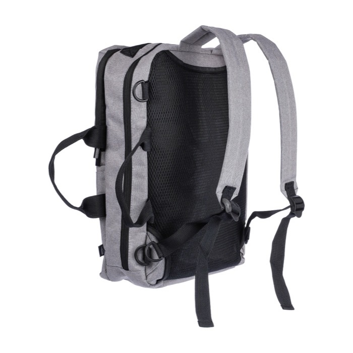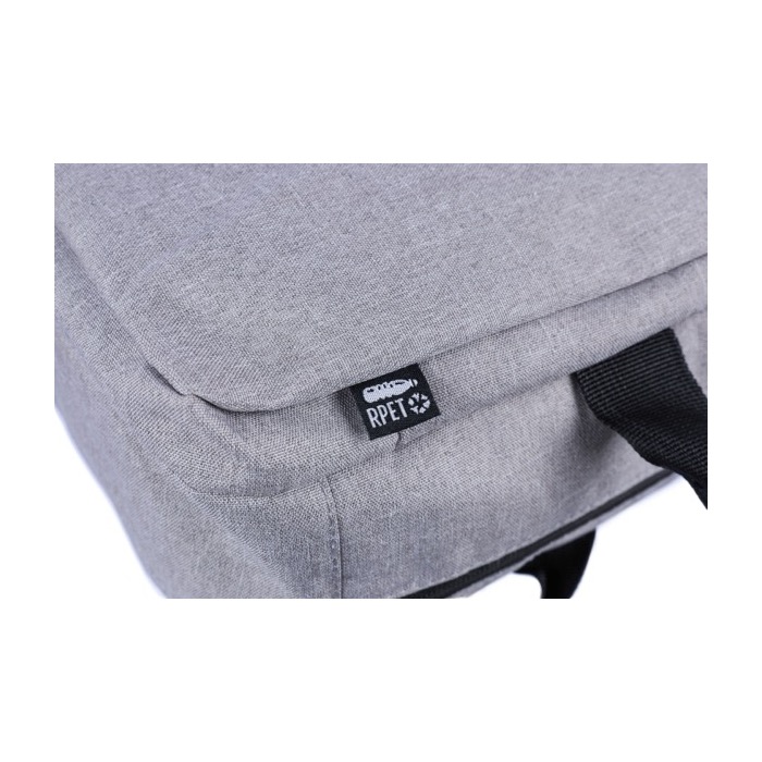 Mochila para portátil de 17 pulgadas fabricada en poliéster rPET (300D), con un forro interior de 210D, ideal para viajes en cabina. Diseñada con un asa superior y correas de hombro ajustables que se pueden plegar detrás de su respaldo acolchado y ventilado, ofrece comodidad y versatilidad. Dos asas laterales facilitan su transporte. El compartimento para portátil, asegurado con velcro, y un pequeño compartimento con cremallera, proporcionan un almacenamiento seguro. Con un peso aproximado de 8 kg, incluye una etiqueta rPET que destaca su compromiso con la sostenibilidad. Perfecta para empresas que buscan soluciones prácticas y ecológicas para el transporte de equipos tecnológicos.