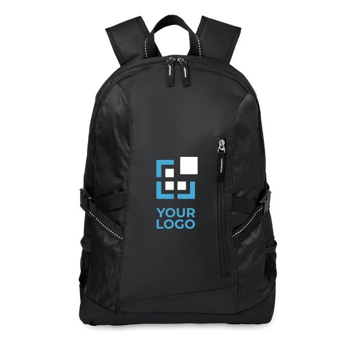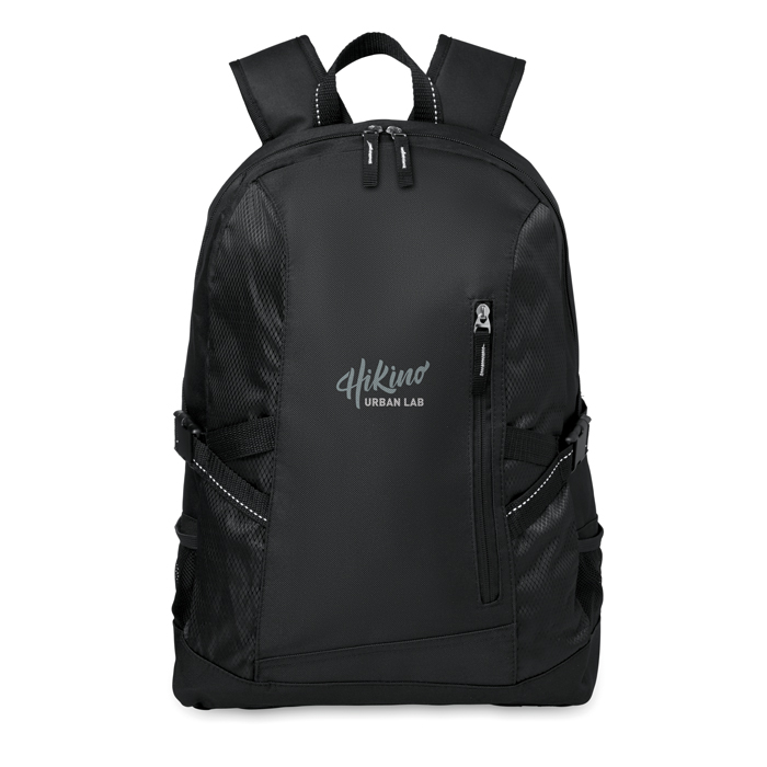 Mochila para portátil de 15 pulgadas fabricada en resistente material 600D con detalles de rip stop. Diseñada para ofrecer funcionalidad y estilo, cuenta con un compartimiento específico para proteger portátiles de hasta 15 pulgadas. Un bolsillo frontal con cremallera proporciona acceso rápido a objetos esenciales, mientras que los dos compartimentos laterales son ideales para botellas o accesorios adicionales. El servicio Express asegura una entrega rápida, facilitando su uso en campañas promocionales o eventos corporativos. Perfecta para empresas que buscan un regalo práctico y moderno para sus clientes o empleados.