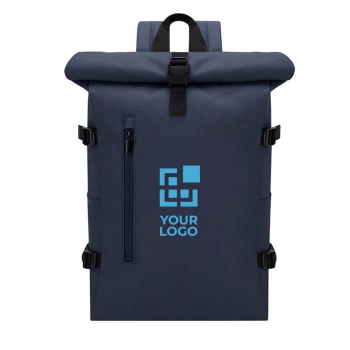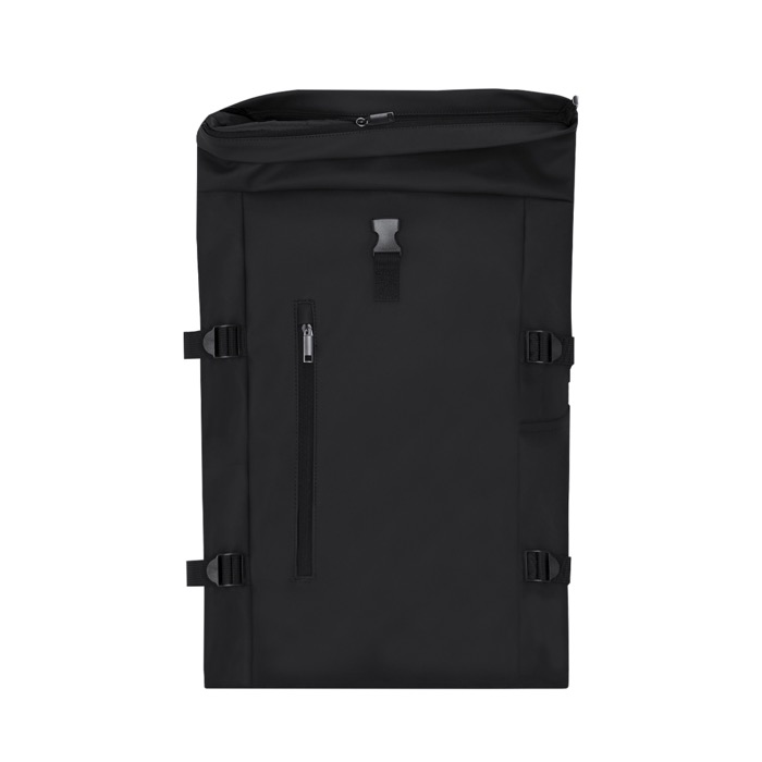 Mochila confeccionada en suave PU (poliuretano) con un sistema de cierre enrollable que combina cremallera y hebilla para mayor seguridad. Incluye un bolsillo frontal y otro trasero con acceso lateral, ambos con cremalleras invisibles, además de dos bolsillos laterales adicionales para almacenamiento extra. Su interior espacioso cuenta con un compartimento acolchado para portátiles de hasta 15 pulgadas, protegiendo tus dispositivos durante el transporte. Las cintas laterales ajustables permiten compactar el volumen según tus necesidades. Las cintas de hombros en PU y la espalda acolchada garantizan comodidad, mientras que la correa pectoral con hebilla ofrece un ajuste seguro. La cinta trasera facilita su ajuste en trolleys o maletas, siendo ideal para viajes y desplazamientos corporativos. Perfecta para empresas que buscan una solución práctica y estilizada para el transporte de equipos y documentos.