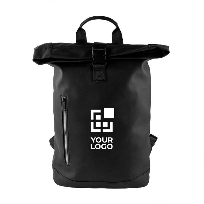 Mochila roll-top fabricada con un acabado suave de rubber, ideal para el transporte seguro de dispositivos electrónicos. Incluye un compartimiento acolchado diseñado específicamente para portátiles de hasta 15 pulgadas, asegurando protección durante el traslado. La cremallera exterior cuenta con un detalle reflectante, proporcionando visibilidad adicional en condiciones de poca luz. Suministrada en una bolsa de plástico, aunque el embalaje puede variar para pedidos personalizados con impresión. Perfecta para empresas que buscan equipar a sus empleados con una solución práctica y segura para el transporte diario de sus herramientas de trabajo.