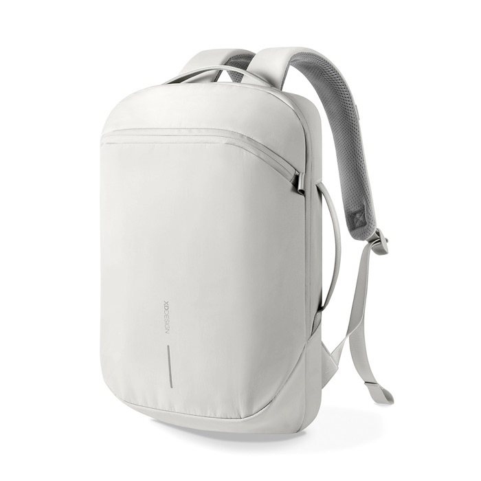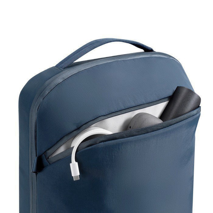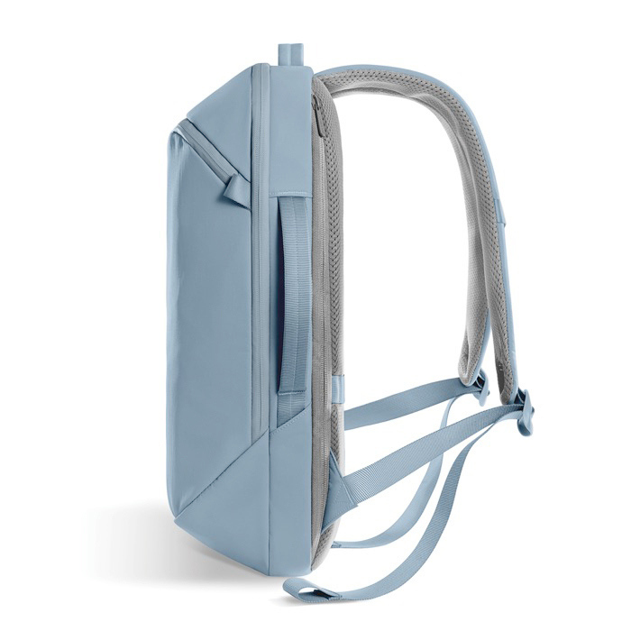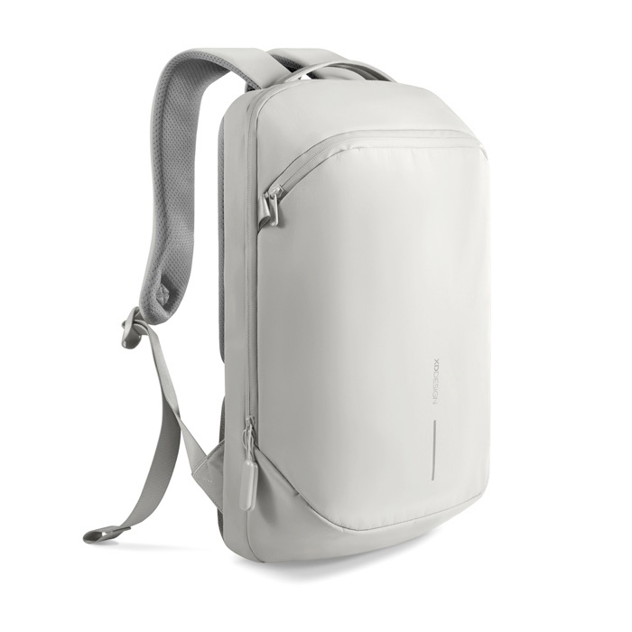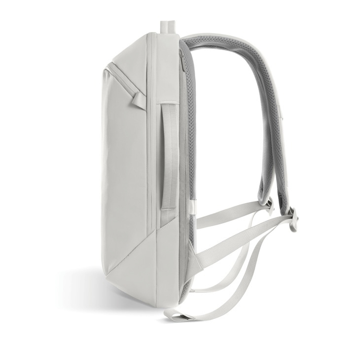 Mochila de nylon reciclado ligera y duradera. pensada para desplazamientos diarios con una silueta delgada y estructurada. El tejido repelente al agua y las cremalleras revestidas de piel sintética ayudan a proteger documentos y dispositivos en trayectos urbanos. Incorpora bolsillo de acceso rápido y un compartimento independiente para portátil de 16" para mantener el contenido ordenado. Las asas superiores y laterales permiten llevarla como más te encaje según la situación. Una opción práctica para acciones de branding interno. eventos y uso en oficina con tu logo.