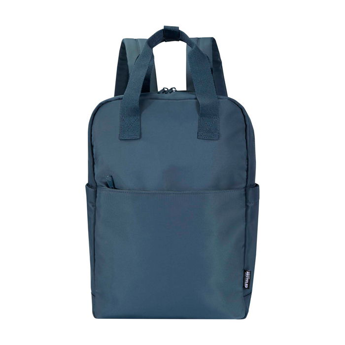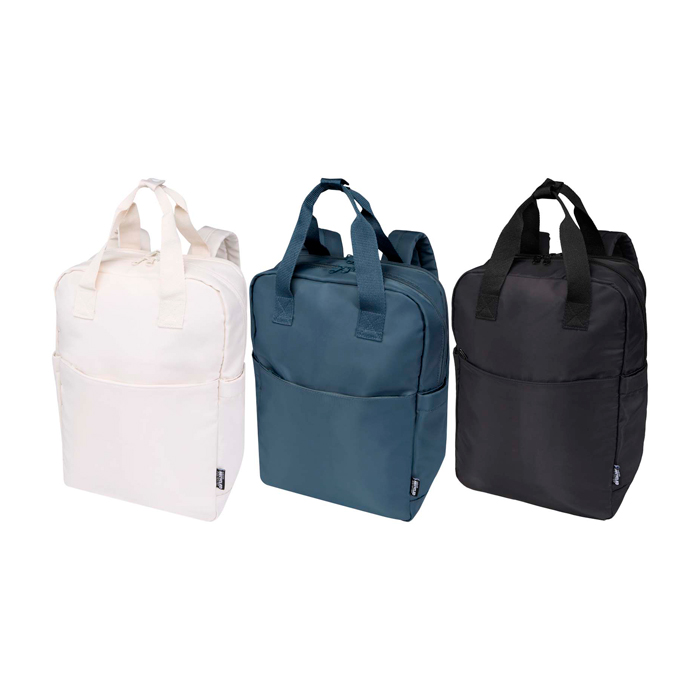 Mochila para portátil reciclada fabricada en resistente poliéster de sarga 290D, ideal para empresas que valoran la sostenibilidad. Su diseño compacto y ligero facilita tanto los viajes como el uso diario. El suave forro de punto y el revestimiento de RPET 210D/poliuretano aseguran durabilidad y practicidad. Con dos bolsillos laterales para botellas de agua, asas dobles y correas acolchadas, ofrece comodidad durante todo el día. El bolsillo frontal con cremallera organiza pasaporte, bolígrafos y llaves, mientras que el compartimento principal es perfecto para una libreta o tableta. Incluye un compartimento específico para portátiles de hasta 14” y una funda trasera para fijarla al equipaje de mano. El rastreador Aware™ garantiza transparencia en la cadena de suministro. Con una capacidad de 9 litros, es ideal para reuniones de negocios o eventos corporativos.