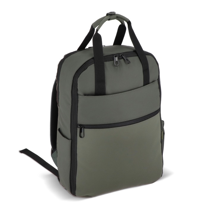 Mochila de uso diario con diseño espacioso para organizar documentación y accesorios. Incluye compartimentos y bolsillos para separar objetos personales y material de trabajo, además de un espacio específico para portátil que ayuda a mantenerlo protegido durante los desplazamientos. La correa trasera para trolley facilita moverse por aeropuertos y estaciones sin cargar peso en la espalda. Opción práctica para equipar equipos comerciales, acreditaciones en ferias o regalos de bienvenida en acciones de RRHH.
