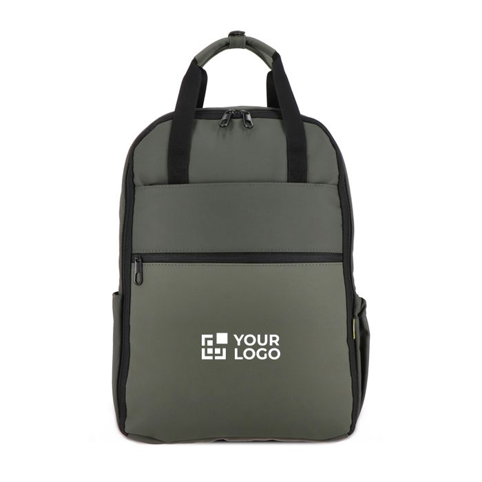 Mochila de diseño para empresas con bolsillo frontal y asas acolchadas