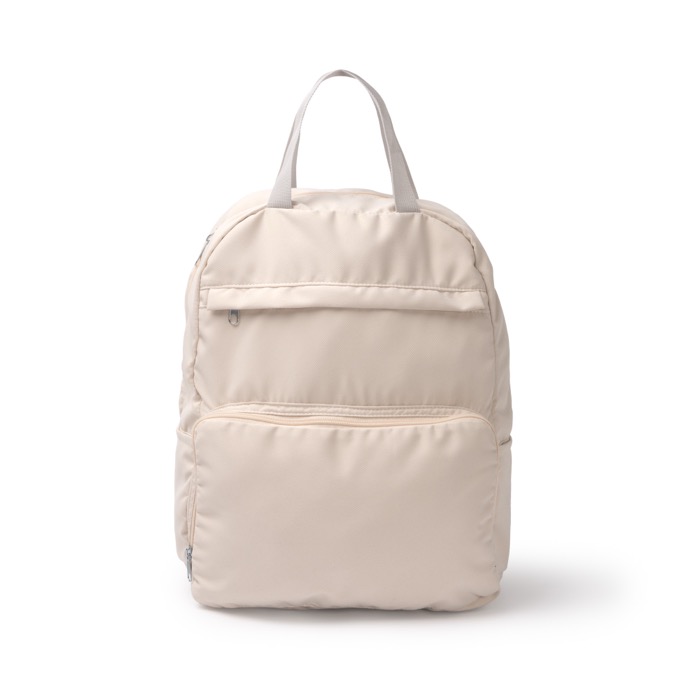 Mochila de poliéster y algodón con diseño plegable pensado para ahorrar espacio al guardarla. El bolsillo frontal con cremallera doble ayuda a mantener una estructura moldeable y a compactarla cuando no se usa. Incluye un compartimento principal y dos compartimentos frontales para organizar accesorios, todos con cierre de cremallera. Incorpora doble asa superior para transporte rápido y tirantes acolchados ajustables para llevarla a la espalda. Los bolsillos laterales permiten transportar botellas. Útil para acciones de RRHH, ferias o bienvenida corporativa con logo.