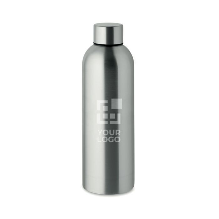 Botella de pared simple de acero inoxidable reciclado (90% acero inoxidable reciclado y 10% acero inoxidable) con capacidad de 750 ml. Incorpora cierre antifugas y sistema antigoteo para evitar derrames en desplazamientos o uso diario en oficina. El formato es cómodo para llevar en bolsa o mochila y facilita la hidratación durante reuniones, formaciones o viajes. Adecuada para personal interno, packs de bienvenida o acciones de marca en eventos y ferias.