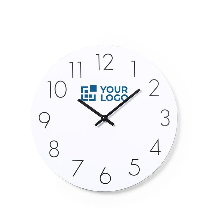 Reloj de pared fabricado en madera MDF, con un dial en blanco que ofrece un diseño limpio y moderno. Viene presentado en una caja individual de diseño kraft, lo que facilita su almacenamiento y transporte. Funciona con una pila AA, que no está incluida, asegurando un uso sencillo y sin complicaciones. Ideal para oficinas, salas de reuniones o áreas comunes, donde su diseño minimalista permite que cualquier logotipo corporativo destaque de manera efectiva. Perfecto para personalizar y utilizar en campañas de marketing o como regalo corporativo.