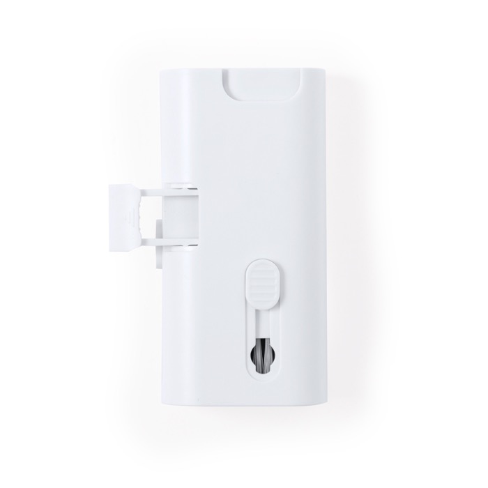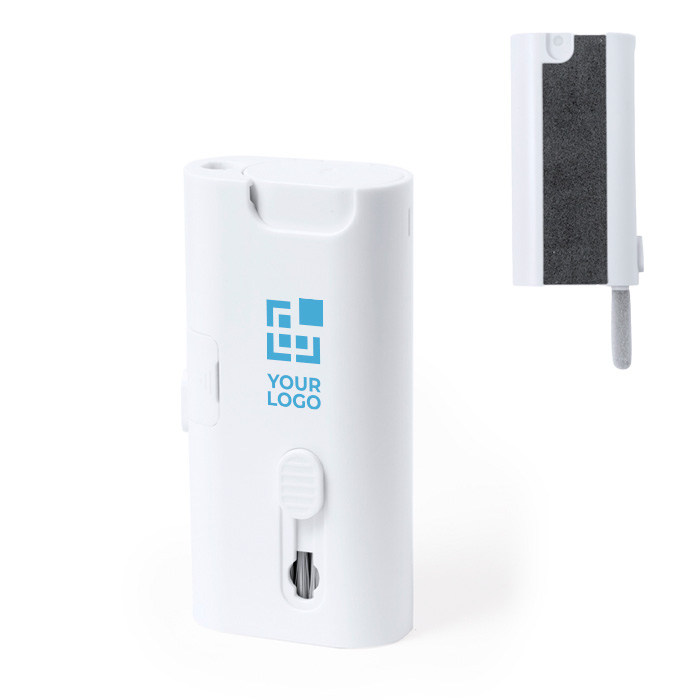 Completo set de limpieza de 6 funciones, especialmente diseñado para el cuidado y mantenimiento de los gadgets tecnológicos. Todos los accesorios están en el interior de la carcasa y están listos para usar deslizando el botón correspondiente a cada uno de ellos. Incluye depósito interior rellenable con pulverizador, zona limpiapantallas, punta metálica, bastón limpiador, cepillos de diferentes formas y accesorio para extraer teclas. Fabricado en resistente plástico ABS, con elegante diseño en color blanco y presentado individualmente en caja de diseño kraft.