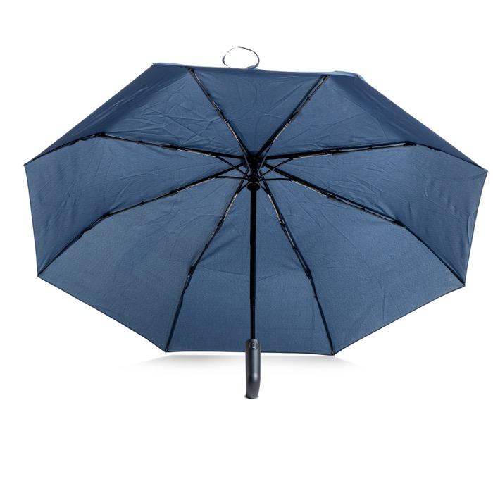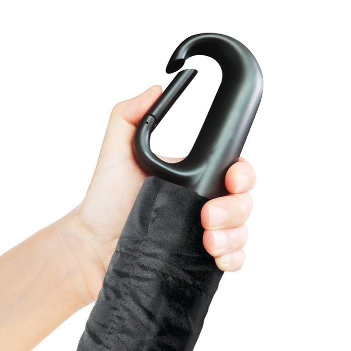 - Paraguas retráctil de plástico reciclado con mango de mosquetón