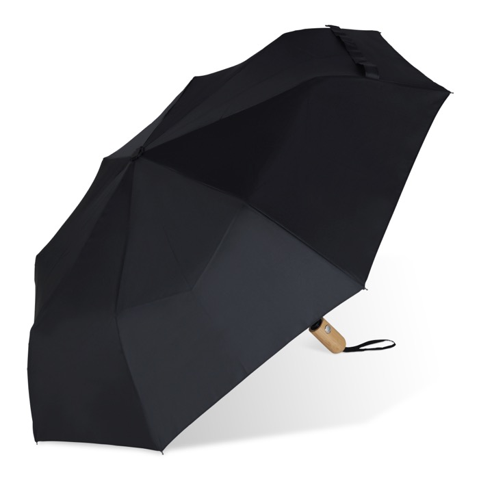 Paraguas plegable con logo, de RPET con mango de madera Ø94