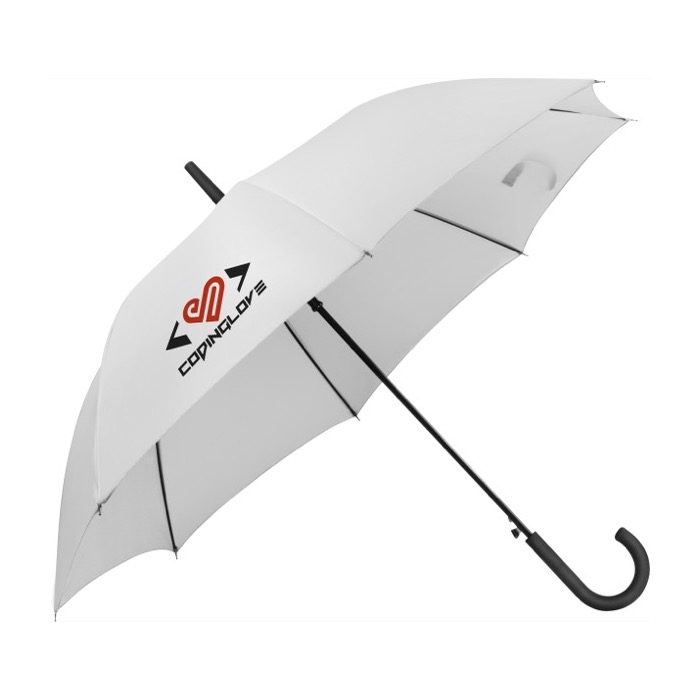 Paraguas de apertura automática fabricado con 8 paneles personalizables, ideal para empresas que buscan destacar su marca. Su estructura robusta y de alta calidad garantiza durabilidad, mientras que los paneles de gran tamaño ofrecen una amplia zona de marcaje, perfecta para personalizar con logotipos o mensajes. El modelo blanco permite impresión a todo color, asegurando que los diseños sean vibrantes y llamativos. Con un diámetro de 100 cm, proporciona excelente cobertura, y su mango curvado ofrece comodidad al sostenerlo. Aunque no cuenta con embalaje individual, su diseño práctico y funcional lo hace ideal para campañas publicitarias o eventos corporativos.