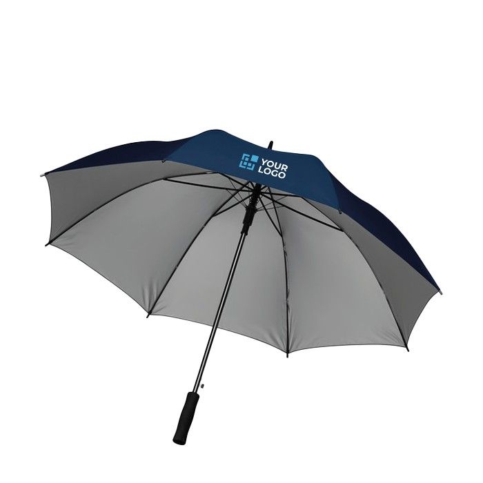 Paraguas promocional de apertura automática con interior plateado para un impacto visual único