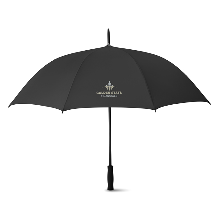 Este paraguas destaca por su cómoda y práctica apertura automática, así como por su dimensión de 27'', brindando una óptima protección bajo la lluvia. Confeccionado en resistente Poliéster Pongee 190T, su estructura metálica en color negro aporta sofisticación, mientras que el mango recto de goma suave asegura un agarre confortable. Un bestseller disponible con servicio Express que fusiona diseño y utilidad, siendo una opción sobresaliente para fidelizar clientes a través de un regalo que refleja calidad y atención al detalle en cada uso.