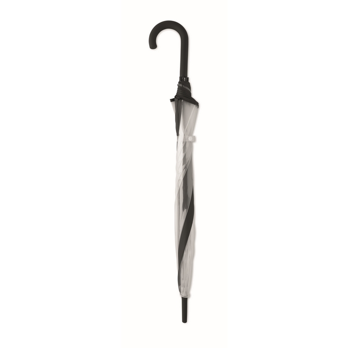 - Paraguas recto de 23'' en POE, diseño transparente con ribete