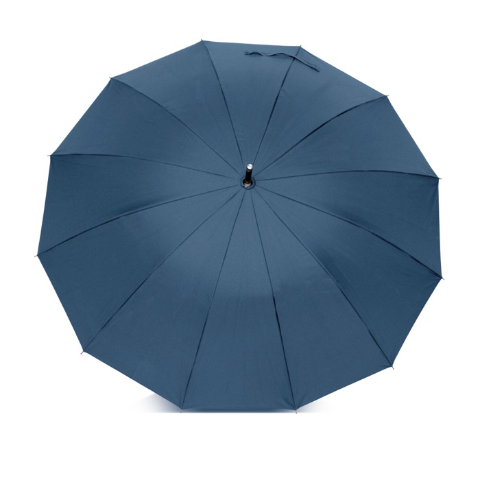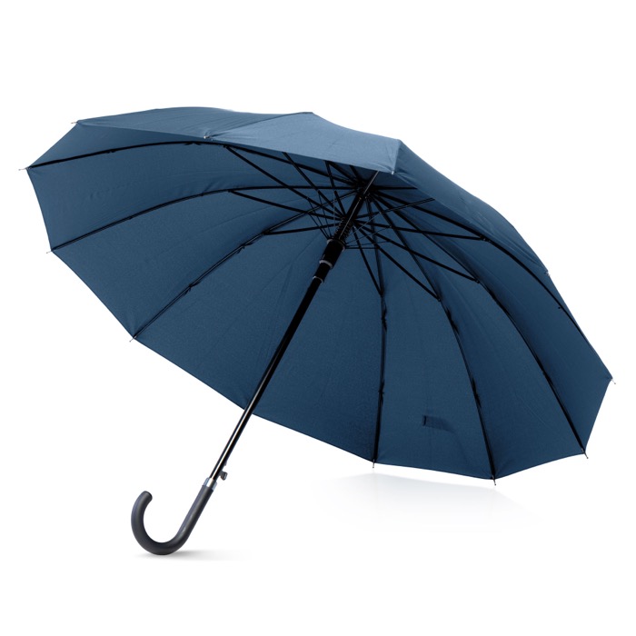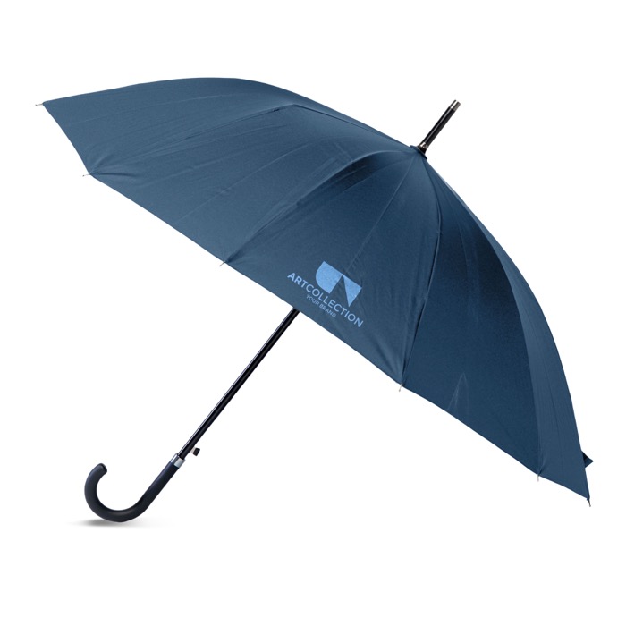 Paraguas de 12 varillas fabricado en metal, diseñado para ofrecer una protección robusta y elegante. La estructura de 12 varillas proporciona una resistencia excepcional contra el viento, asegurando estabilidad en condiciones climáticas adversas. El mango curvado en forma de J garantiza un agarre cómodo y ergonómico, ideal para un uso prolongado. La cubierta de tela pongee no solo repele la lluvia de manera efectiva, sino que también aporta un toque de lujo y suavidad. Con un diámetro de 105 cm, ofrece amplia cobertura. Disponible en negro y azul marino, se adapta a cualquier estilo. El sistema de apertura automática y cierre manual facilita su uso. Perfecto para empresas que buscan un accesorio funcional y elegante para eventos corporativos o como regalo de cortesía.