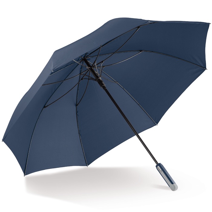 Paraguas grande fabricado con un marco de fibra de vidrio a prueba de viento, ideal para enfrentar condiciones climáticas adversas. Con un diámetro de 114 cm, ofrece una amplia cobertura, protegiendo eficazmente de la lluvia. El diseño presenta un elegante efecto de color entre la tapa y el mango ergonómico, que es recto, proporcionando un aspecto atemporal y sofisticado. El sistema de apertura automática y cierre manual facilita su uso, permitiendo una rápida respuesta ante cambios climáticos. Perfecto para empresas que buscan un accesorio funcional y estilizado, ideal para eventos corporativos o como regalo promocional.