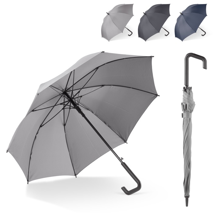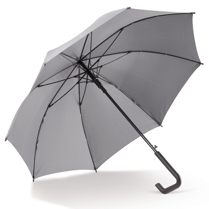 Paraguas stick de lujo fabricado con un marco completamente de fibra de vidrio, lo que garantiza resistencia al viento y durabilidad. Con un diámetro de 106 cm, ofrece amplia cobertura para proteger de la lluvia. El mango curvado de diseño añade un toque de sofisticación, combinando estilo y funcionalidad. El sistema de apertura automática y cierre manual facilita su uso, permitiendo una rápida respuesta ante cambios climáticos. Ideal para empresas que buscan un accesorio elegante y práctico para sus empleados o como regalo corporativo en eventos y conferencias.