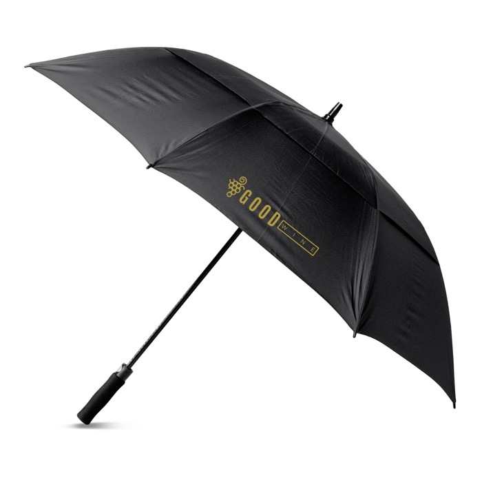 Protección total con nuestro paraguas de doble panel y mango de golf