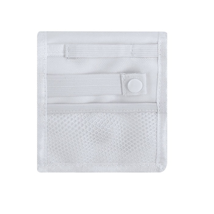 Organizador de bolsillo de poliéster 600D de plástico reciclado (RPET) con cierre imantado, pensado para llevar lo esencial de forma ordenada y accesible. Incluye varios compartimentos para separar útiles pequeños y un bolsillo de malla que facilita ver el contenido de un vistazo. Las solapas se sujetan entre sí mediante una correa con botón, lo que permite plegarlo y convertirlo en un formato compacto para bolsillo. Lleva etiqueta distintiva RPET. Recomendado para personal sanitario, eventos y acciones de marca en entornos profesionales.