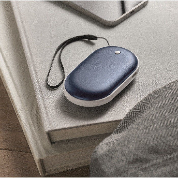 Calentador de manos eléctrico con batería de 5000 mAh y tres niveles de temperatura. Proporciona calor constante en exteriores, siendo ideal para eventos al aire libre.