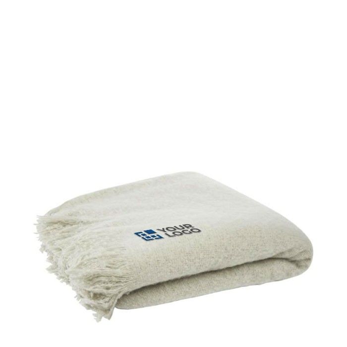 Manta de mohair y RPET en tonos claros con flecos 215 g/m2 Mohair