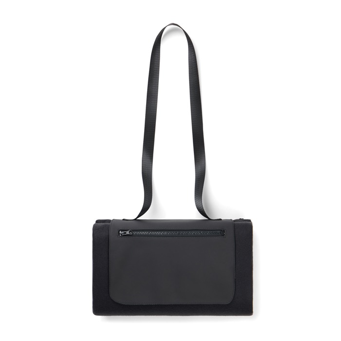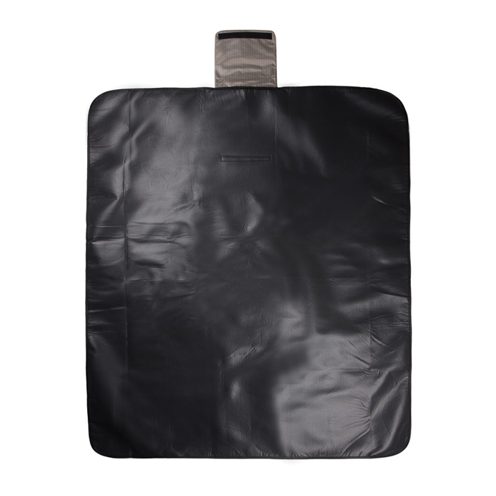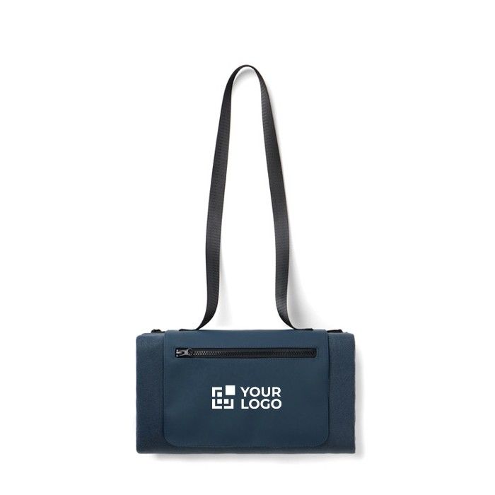 Manta de picnic fabricada con poliéster reciclado, con una superficie de forro polar suave que ofrece comodidad y un reverso de PEVA impermeable que protege contra la humedad y el frío. Con un tamaño de 150 × 130 cm, es ideal para reuniones al aire libre. Incluye un asa larga para facilitar su transporte y un práctico bolsillo frontal con cremallera para guardar objetos esenciales como llaves o teléfono. Certificada por RCS (Recycled Claim Standard), asegura la trazabilidad de los materiales reciclados, con un contenido reciclado total del 47 % en base al peso del producto. Perfecta para eventos corporativos al aire libre o como regalo promocional sostenible.