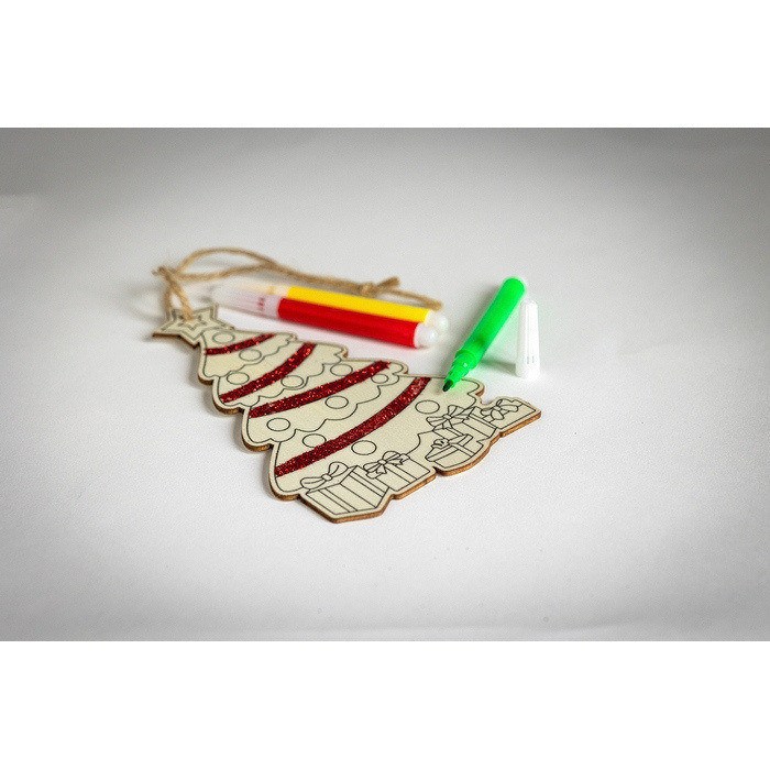 Adorno de árbol de Navidad fabricado en madera de álamo, ideal para añadir un toque personal a las decoraciones festivas. Incluye tres rotuladores para colorear, permitiendo personalizar cada pieza según las preferencias de cada cliente o empleado. El cordón de yute facilita su colocación en cualquier árbol o espacio decorativo. Este producto no solo embellece, sino que también ofrece una actividad creativa y participativa. Perfecto para empresas que buscan fortalecer la conexión con sus clientes o empleados durante la temporada navideña, ya sea como regalo corporativo o como parte de una campaña de marketing festiva.