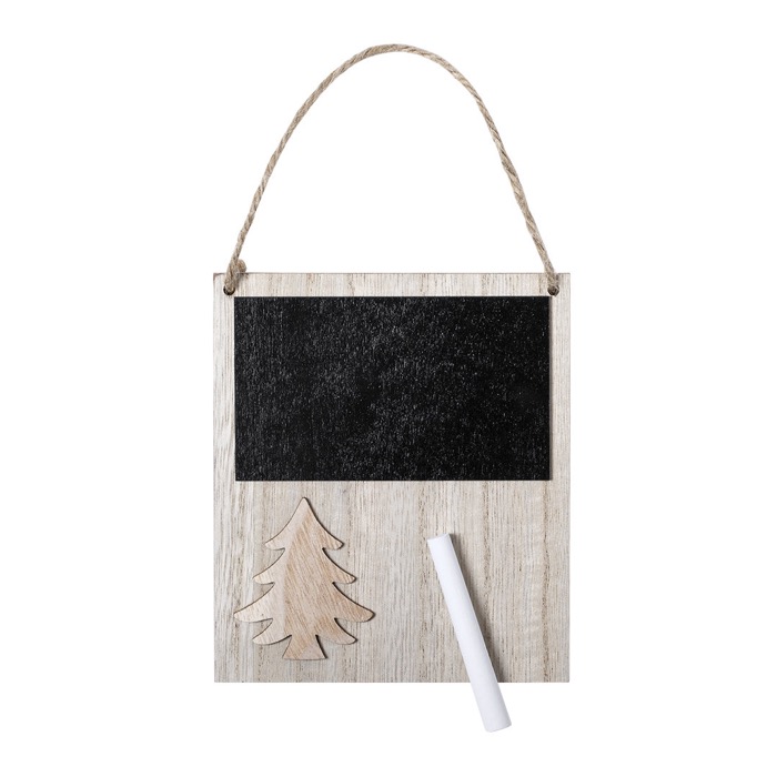 Adorno de Navidad fabricado en madera de tacto suave, con un diseño troquelado de árbol de Navidad. La parte trasera es imantada, lo que permite colocarlo fácilmente en superficies metálicas como neveras. Incluye un cordón de yute para colgarlo en cualquier lugar. Viene con una tiza para escribir mensajes personalizados en su superficie de pizarra. Cada adorno se presenta en una bolsa individual eco, ideal para mantenerlo protegido. Perfecto para empresas que buscan un detalle navideño funcional y decorativo, ideal para campañas de marketing o regalos corporativos.