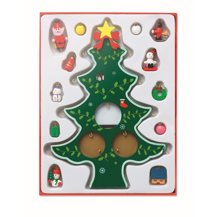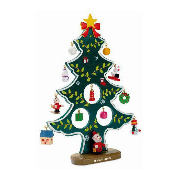 Árbol de Navidad de madera, diseñado con 12 adornos para colgar, ideal para añadir un toque festivo a cualquier entorno corporativo. Viene en una caja individual con tapa transparente, lo que facilita su almacenamiento y transporte. Su diseño sencillo pero elegante lo convierte en un elemento decorativo destacado, perfecto para oficinas, salas de reuniones o áreas de recepción. El servicio Express asegura una entrega rápida, ideal para empresas que necesitan soluciones decorativas de última hora. Úsalo para crear un ambiente acogedor en eventos corporativos o como parte de una estrategia de marketing estacional.