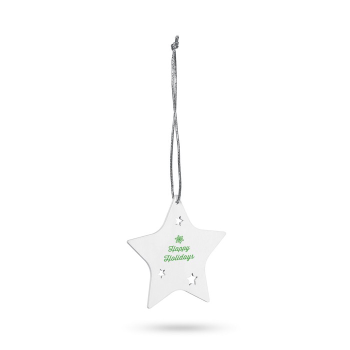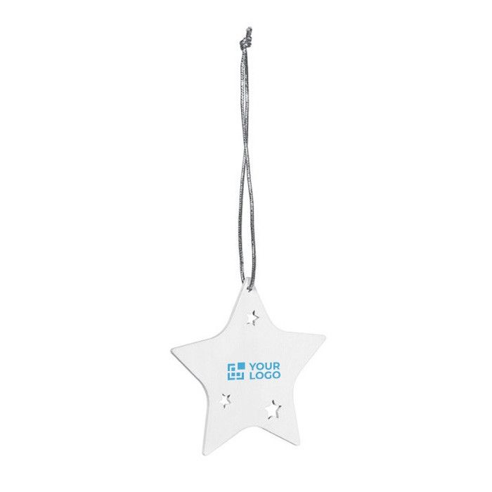 Adorno de Navidad de madera. Esta estrella blanca es ideal para colgar en cualquier rincón del hogar o de la oficina, aportando un toque festivo y elegante. Además, ofrece la opción de personalizarla con un logo o mensaje, lo que la convierte en una herramienta versátil para reforzar la identidad de marca. Con un servicio Express disponible, garantiza una entrega rápida y eficiente. Su popularidad como Bestseller asegura su aceptación y demanda en el mercado. Perfecta para campañas corporativas o como regalo de fin de año para clientes y empleados.