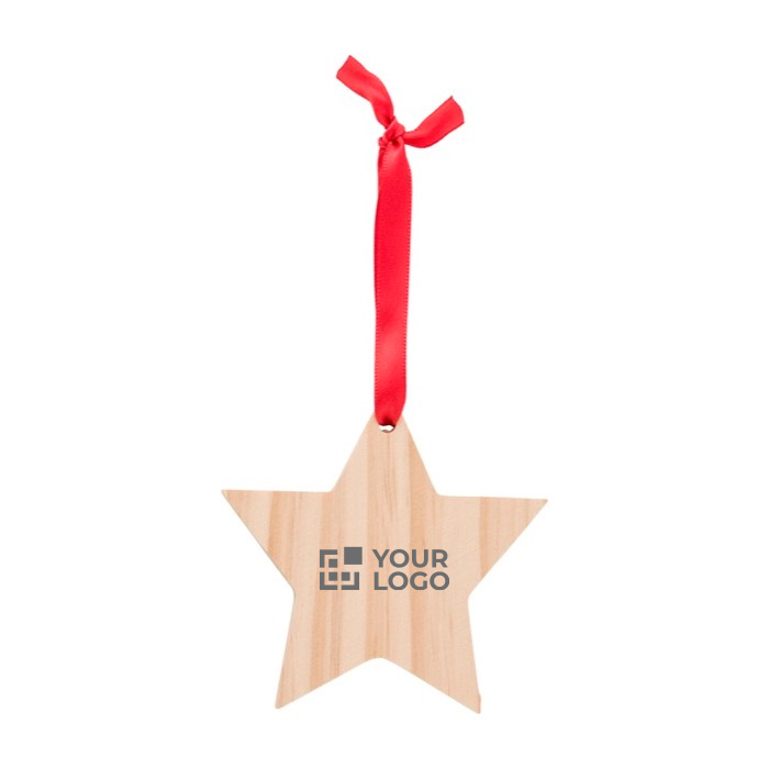 Adorno navideño de madera con forma de estrella, diseñado para aportar un toque elegante y natural a cualquier entorno festivo. Fabricado con más del 60% de materiales ecológicos, este adorno refleja un compromiso con la sostenibilidad. Viene con una cinta roja que facilita su colocación en el árbol de Navidad, añadiendo un contraste vibrante y atractivo. Cada adorno se suministra en una bolsa individual, asegurando su protección y fácil distribución. Con servicio Express disponible, es ideal para empresas que buscan soluciones rápidas y efectivas. Perfecto para decorar oficinas o como obsequio corporativo en eventos navideños.