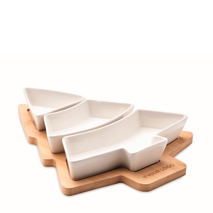 Bandeja de bambú y platos de cerámica en forma de arbol Christmas Tree