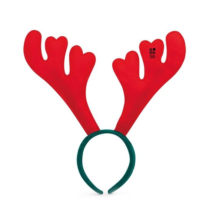 Si estás organizando la fiesta de Navidad de tu empresa, este es el accesorio que no puedes olvidarte de incluir en la celebración. Y es que, ¿qué es un evento navideño sin sus características diademas en forma de reno? En este caso, se trata de un accesorio de poliéster con diadema negra y cuernos rojos. Además, destaca por ser personalizable con tu logotipo en cualquiera de ambos cuernos, ya sea mediante transfer digital o transfer serigráfico. Dispone de servicio de entrega rápido.