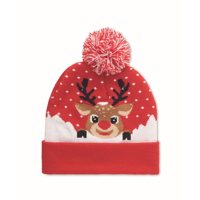 Gorro de punto navideño iluminado con 6 LED en acrílico elástico suave