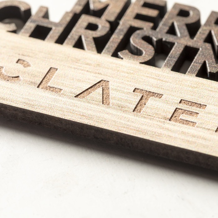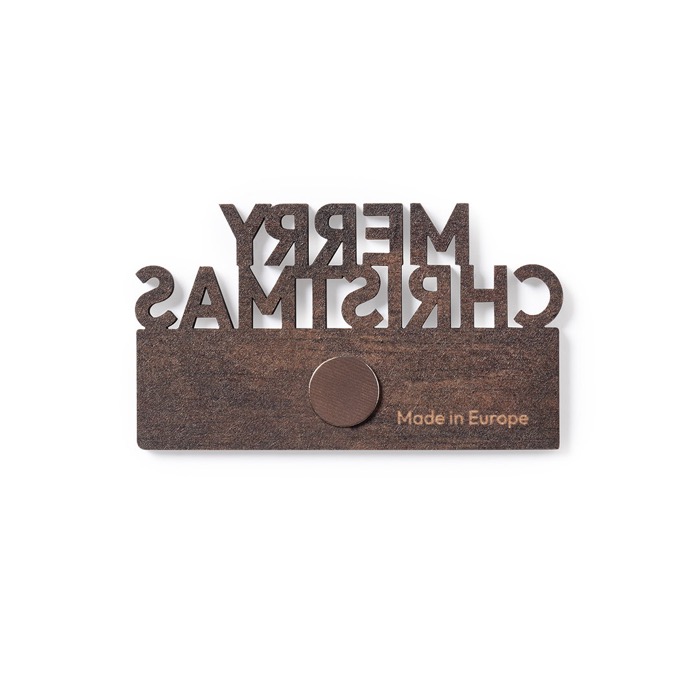 Imán con mensaje Merry Christmas y logotipo de madera bicolor