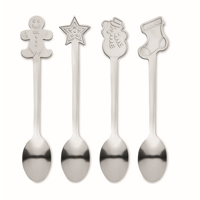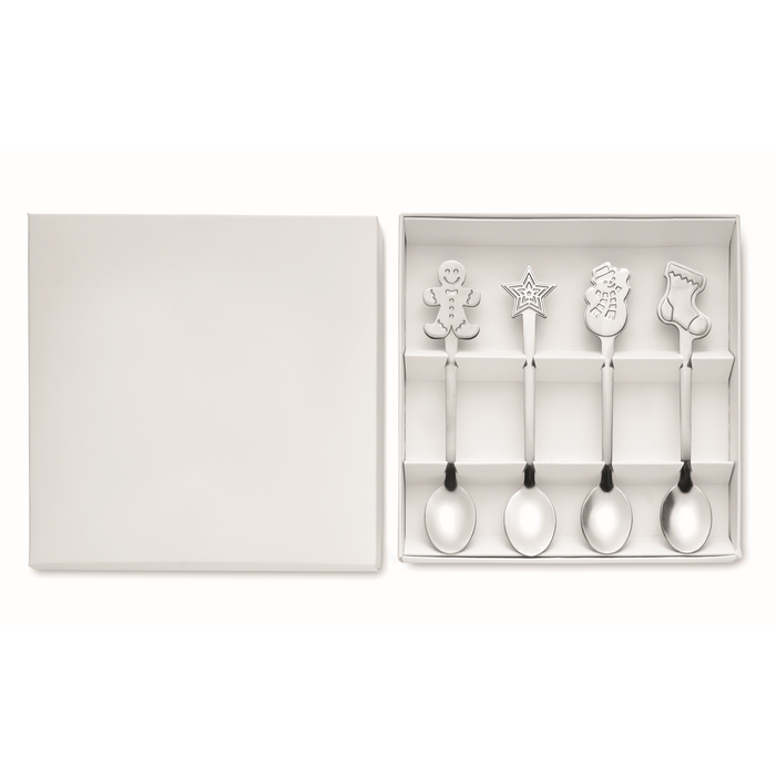 Juego de 4 cucharas de té versión navideña con caja de regalo