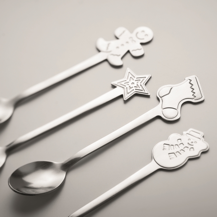 Juego de 4 cucharas de té fabricadas en acero inoxidable, cada una decorada con motivos navideños: una galleta, una estrella, un muñeco de nieve y un calcetín. Presentadas en una elegante caja de regalo, estas cucharas son ideales para añadir un toque festivo a las reuniones de fin de año. El material de alta calidad asegura durabilidad y resistencia, mientras que el diseño temático aporta un elemento decorativo a cualquier mesa. Con servicio Express disponible, es una opción práctica para empresas que buscan regalos corporativos o detalles para eventos de temporada.
