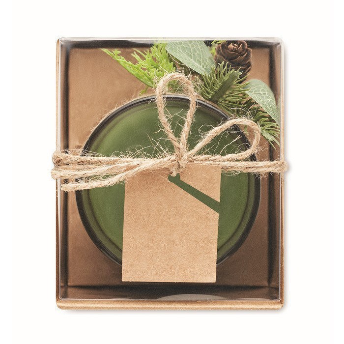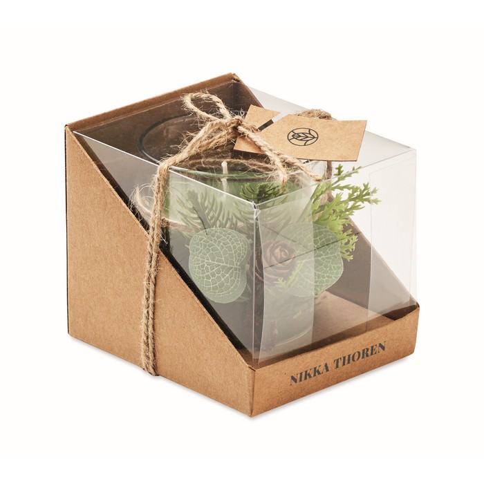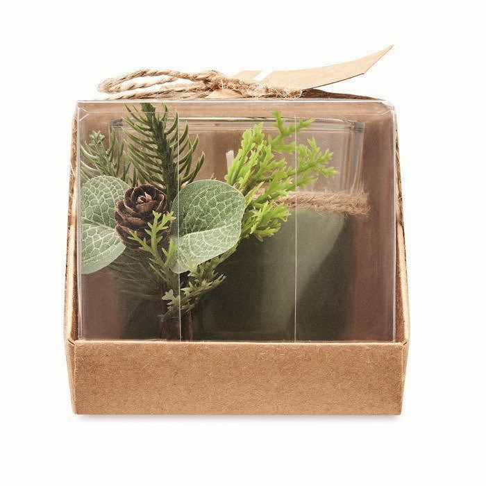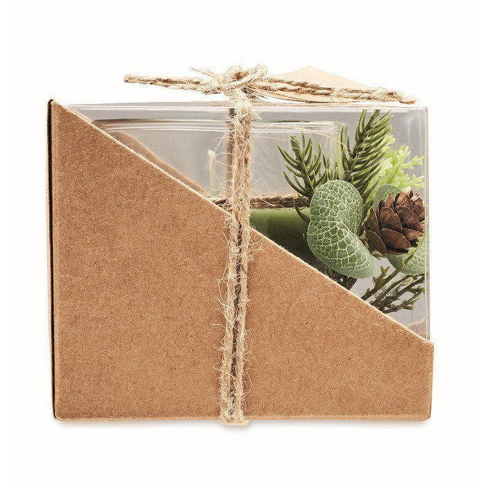 Porta velas de cristal, con un peso de 120 gramos, presenta una decoración inspirada en un bosque, ideal para crear un ambiente natural y relajante. Viene acompañado de una vela, listo para su uso inmediato. El embalaje incluye una caja de cartón y PVC, adornada con un cordón de yute y una etiqueta kraft, lo que le da un toque rústico y elegante. Además, cuenta con un servicio Express para entregas rápidas. Perfecto para empresas que buscan un detalle distintivo para eventos corporativos o como parte de una estrategia de marketing que resalte la conexión con la naturaleza.