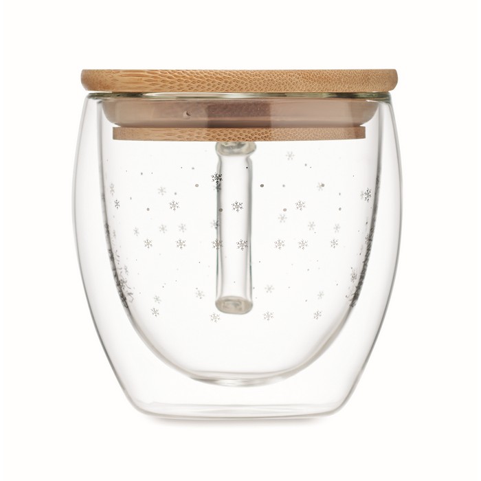 Taza de borosilicato de doble pared, diseñada con un elegante árbol en su interior, acompañada de una tapa de bambú que también funciona como posavasos. Con una capacidad de 220 ml, esta taza es ideal para mantener la temperatura de las bebidas, gracias a su estructura de doble pared que proporciona aislamiento térmico. El bambú, siendo un material natural, ofrece un toque ecológico y puede presentar variaciones de color, añadiendo un carácter único a cada pieza. Perfecta para oficinas o eventos corporativos, esta taza puede personalizarse para reforzar la identidad de marca y se ofrece con un servicio Express para entregas rápidas.