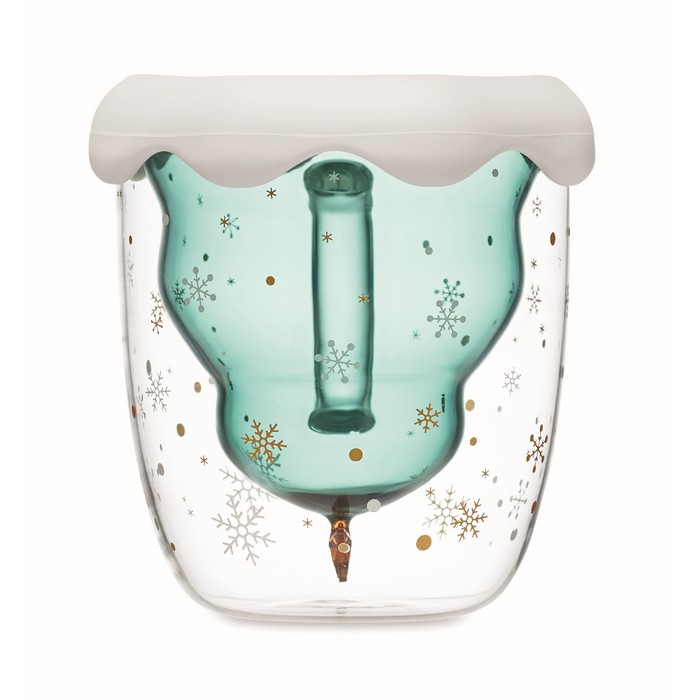Taza de borosilicato de doble pared con diseño navideño, ideal para mantener las bebidas a la temperatura adecuada. El borosilicato es un vidrio más resistente que el cristal convencional, ofreciendo durabilidad y calidad superior. Con una capacidad de 250 ml, es perfecta para servir café o té en reuniones de oficina. Incluye una tapa y un posavasos de silicona, proporcionando comodidad y evitando derrames. El diseño de árbol en su interior añade un toque festivo, ideal para eventos corporativos en temporada navideña. El servicio Express asegura una entrega rápida, facilitando la planificación de eventos o regalos empresariales.