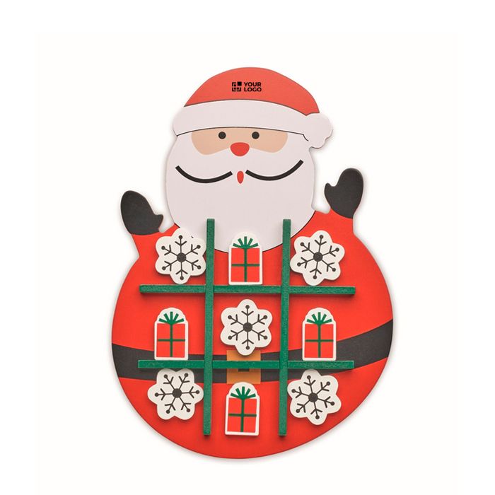 Juego de tres en raya de madera con diseño navideño, ideal para añadir un toque festivo a cualquier espacio. Fabricado con madera certificada por el Forest Stewardship Council (FSC), garantiza un origen sostenible y responsable. Las dimensiones de 15.2 cm lo hacen perfecto para escritorios o salas de espera, ofreciendo un entretenimiento sencillo y accesible. Su diseño navideño lo convierte en un elemento decorativo atractivo durante las fiestas. Este juego es una excelente opción para empresas que buscan regalos corporativos sostenibles o herramientas de marketing que promuevan la interacción y el compromiso durante eventos de fin de año.