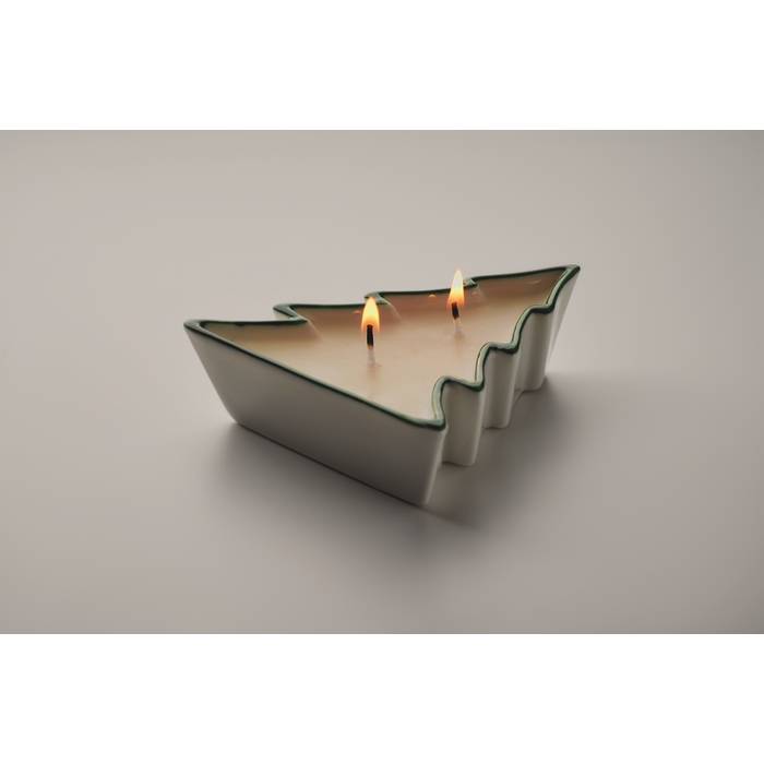 Vela de cera vegetal en soporte con forma de árbol de navidad