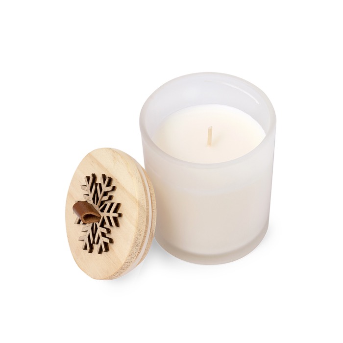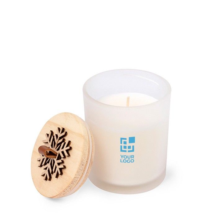 Regala calma y sensación de tranquilidad con esta vela aromática con olor a vainilla que, además, sirve como ornamento decorativo durante la Navidad. Y es que, presentada en tarro de cristal, viene con una tapa de madera con detalle en forma de copo de nieve, un acabado bonito y muy acorde a las fiestas. Puedes personalizarla con tu logotipo en la parte central del cuerpo del tarro, ya sea mediante tampografía o con grabado láser. De este modo, se convierte en un excelente regalo de empresa para fiestas o campañas navideñas. Un bestseller presentado en caja individual de diseño kraft.