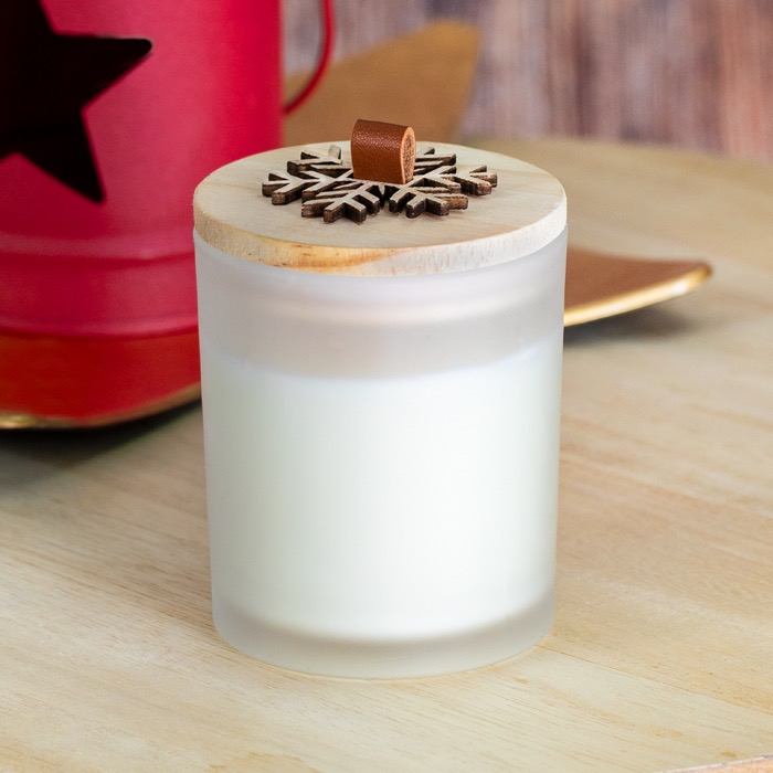 Velas aromáticas personalizadas navideñas con detalle de copo de nieve