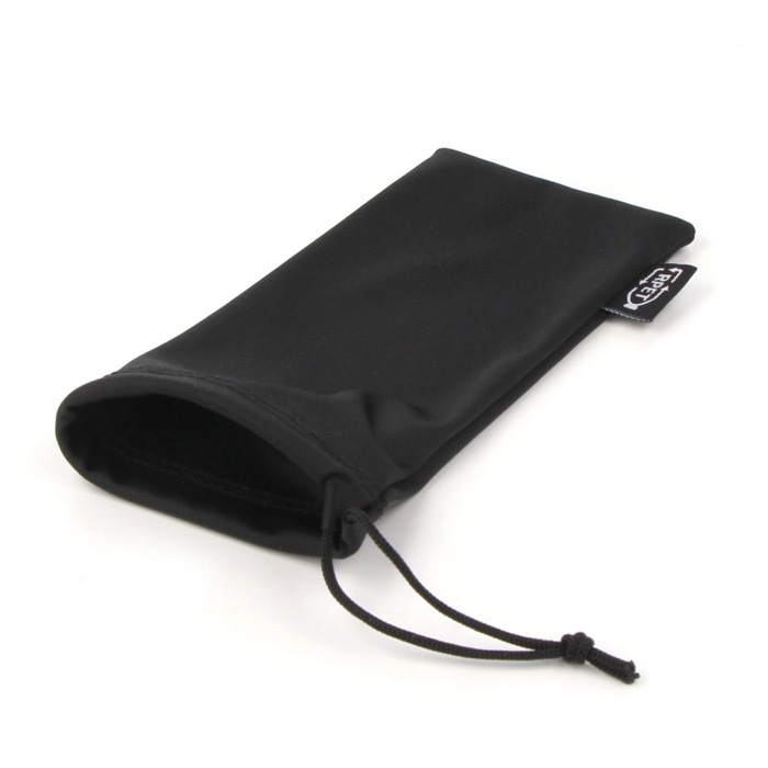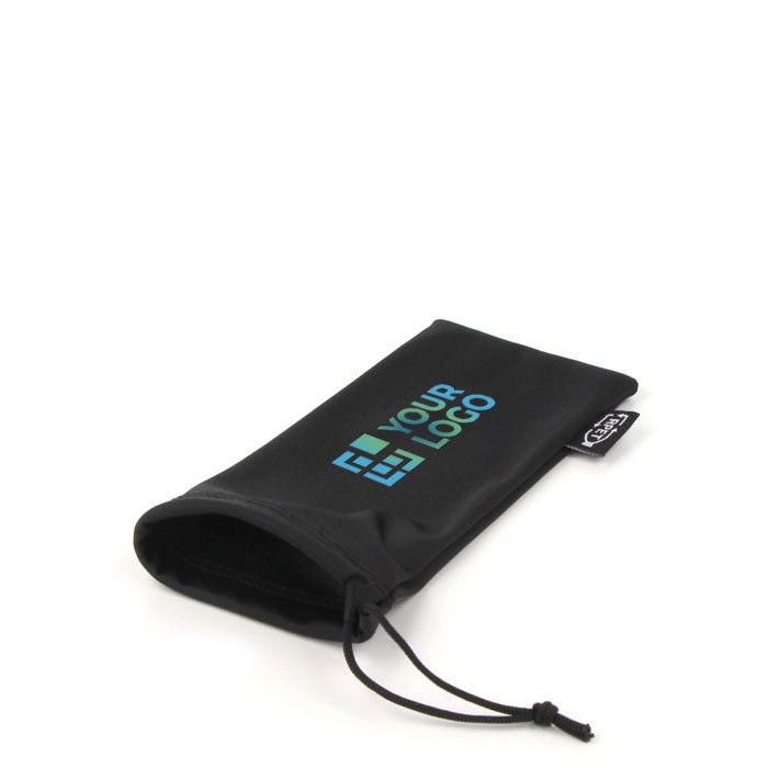 Funda negra para gafas de sol hecha de RPET con cordón de cierre