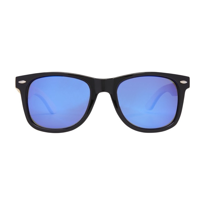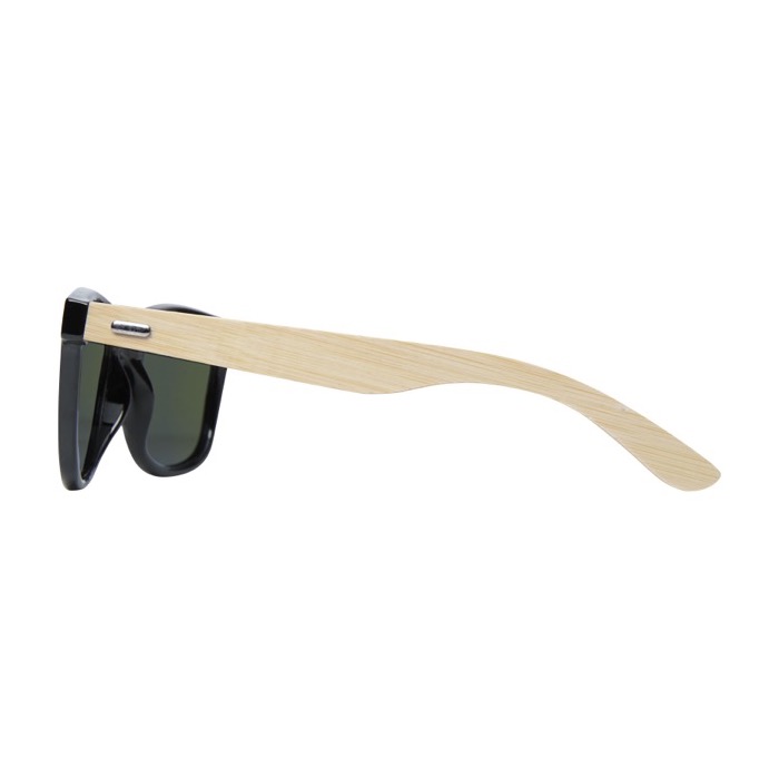 Gafas de sol fabricadas en rPET y bambú. La montura presenta un acabado de alta gama, pulida y pintada, que garantiza durabilidad y estilo. Las patillas de bambú ofrecen un ajuste ligero y cómodo, ideal para un uso prolongado. Las lentes de cristal de espejo azul son polarizadas, proporcionando una visión clara y reduciendo el deslumbramiento. Cumplen con la norma EN ISO 12312-1 y cuentan con protección UV400, clasificadas como Categoría 3, asegurando una protección óptima contra los rayos solares. Se entregan con un paño de limpieza de rPET y en una caja de cartón reciclado, subrayando su compromiso con la sostenibilidad. El grabado láser es una opción recomendada para personalización. Perfectas para empresas que buscan productos promocionales ecológicos y de calidad.