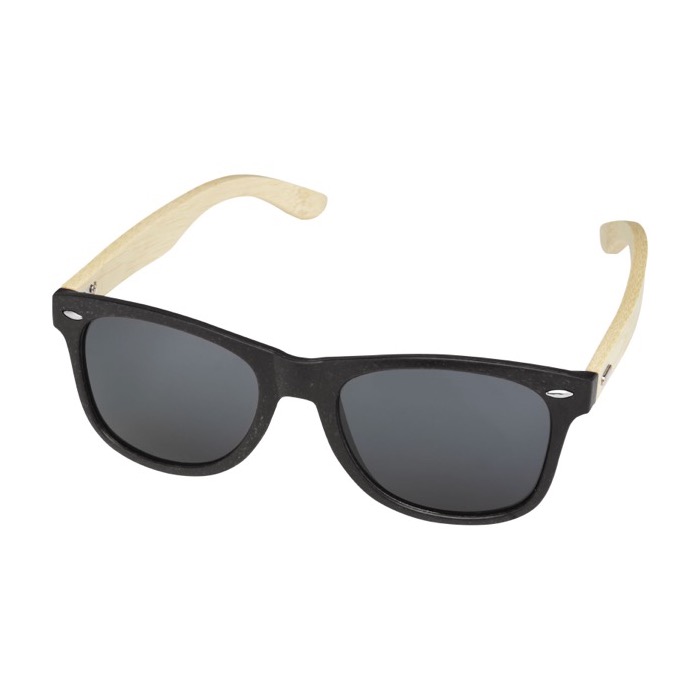 Gafas de sol sostenibles con diseño retro, fabricadas con una mezcla de plástico y bambú, ideales para empresas que buscan productos ecológicos. La montura combina la resistencia del plástico con la sostenibilidad del bambú, reduciendo el uso de plásticos vírgenes. Las patillas de bambú ofrecen un ajuste ligero y cómodo, perfecto para largas jornadas al aire libre. Cumplen con la norma EN ISO 12312-1, garantizando calidad y seguridad. Las lentes UV400, clasificadas como Categoría 3, protegen eficazmente contra los rayos solares. El grabado láser es una opción sostenible para personalizar con el logo de la empresa. Perfectas para eventos corporativos, campañas de marketing o como regalos promocionales en festivales y actividades al aire libre. Servicio Express disponible para entregas rápidas.