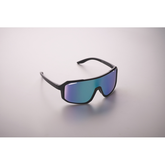 Gafas de sol deportivas con lentes espejadas y montura de color, pensadas para uso en exterior durante eventos. Incorporan protección UV400 para ayudar a reducir la exposición al sol en entornos de alta luminosidad. El ajuste es ligero y cómodo para llevarlas durante varias horas. La combinación de lentes espejadas y montura de color facilita una presencia visual uniforme en equipos o staff. Recomendables para acciones de merchandising en ferias, promociones y campañas de deporte.