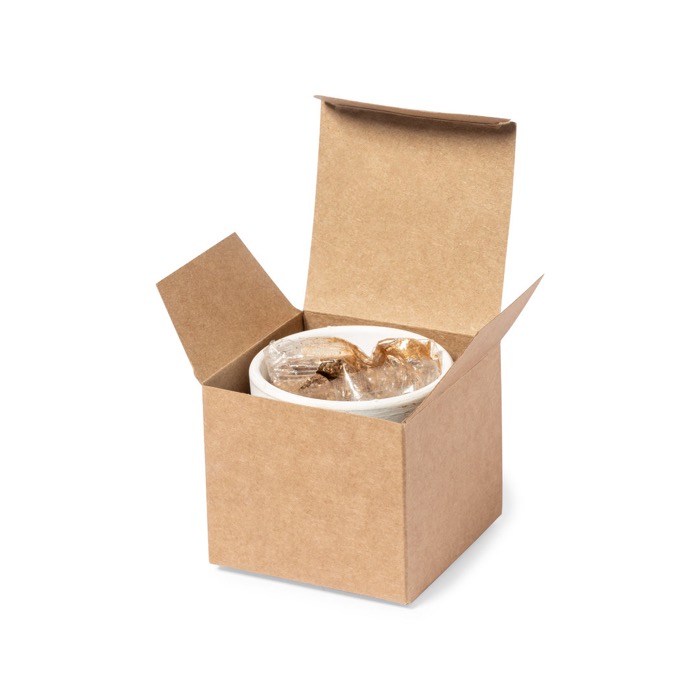 Con esta maceta en terracota blanca con semillas de cactus lograrás proyectar una imagen de marca vinculada a la sostenibilidad, un requisito cada vez más habitual entre clientes y trabajadores. En concreto, se presenta dentro de una caja de cartón kraft individual, incluye las semillas de cactus y una bolsita de sustrato de crecimiento, y es perfectamente personalizable con logo mediante tampografía. Así pues, si quieres aumentar la visibilidad de marca a la vez que refuerzas tu compromiso con el planeta, este regalo es una opción con mensaje firme y claro.